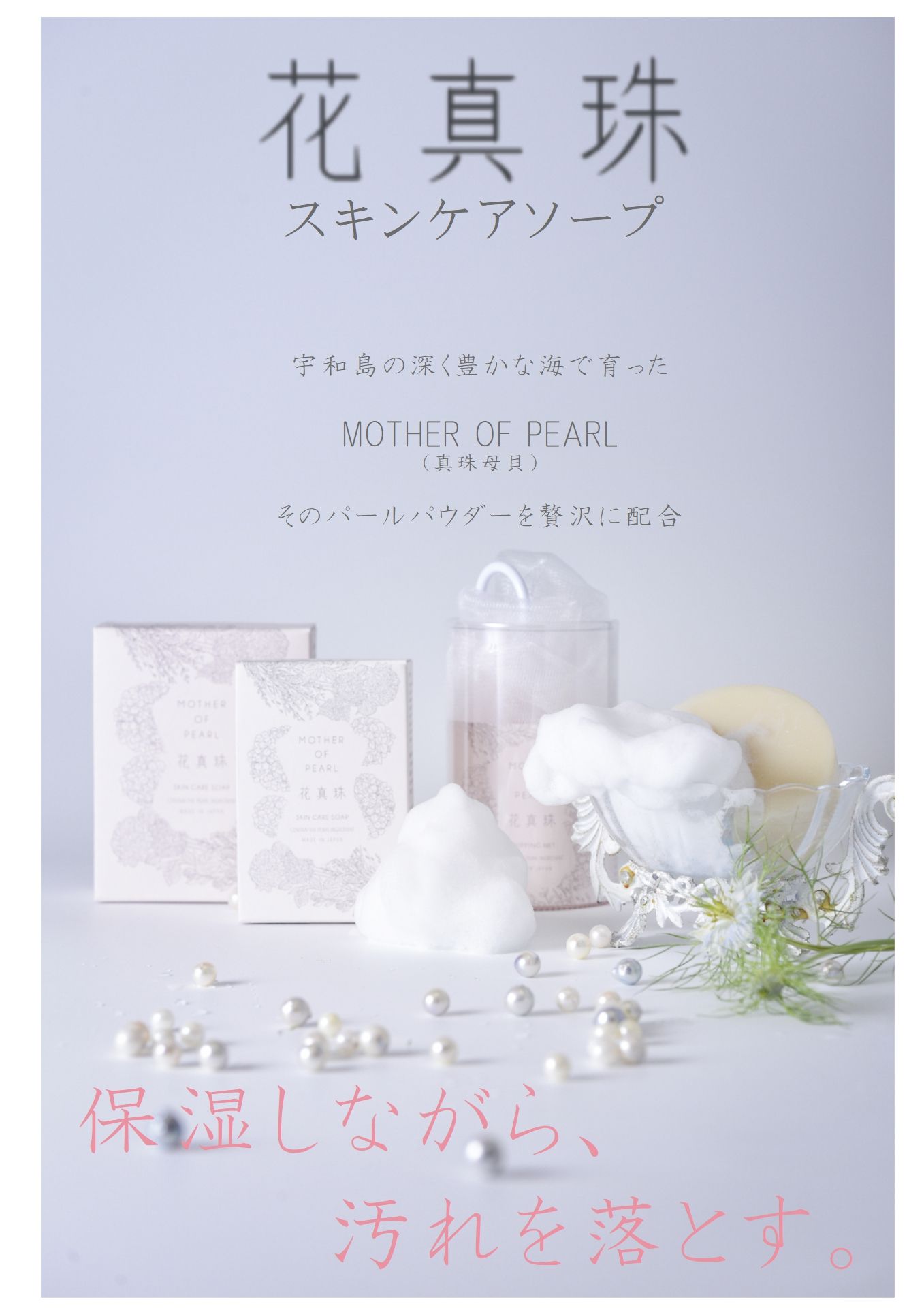 完成までに1か月以上の長い時間と手間をかけた花真珠スキンケアソープは、お肌にやさしいキメ細かな泡立ちで、毛穴の奥の汚れもスッキリと洗い流し、みずみずしい素肌を保ちます。