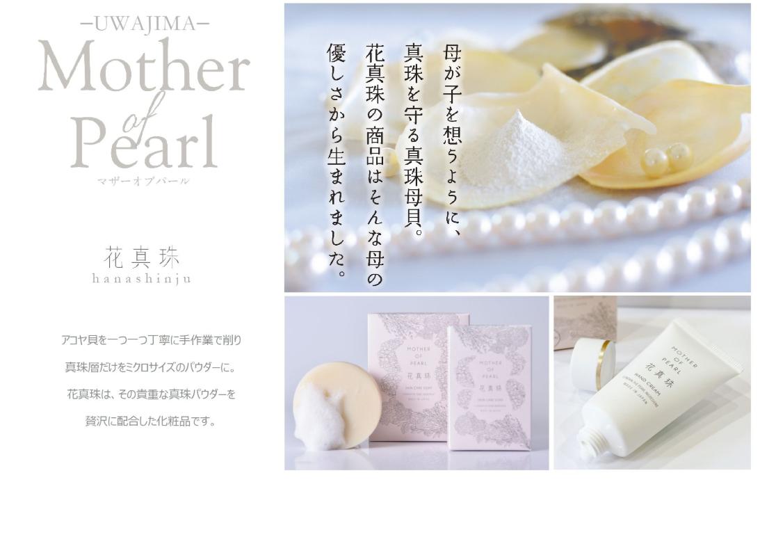 『花真珠』のパールパウダーは、アコヤ貝の内側にある真珠層だけを丁寧に削り出して粉末にした、こだわりの天然素材です。